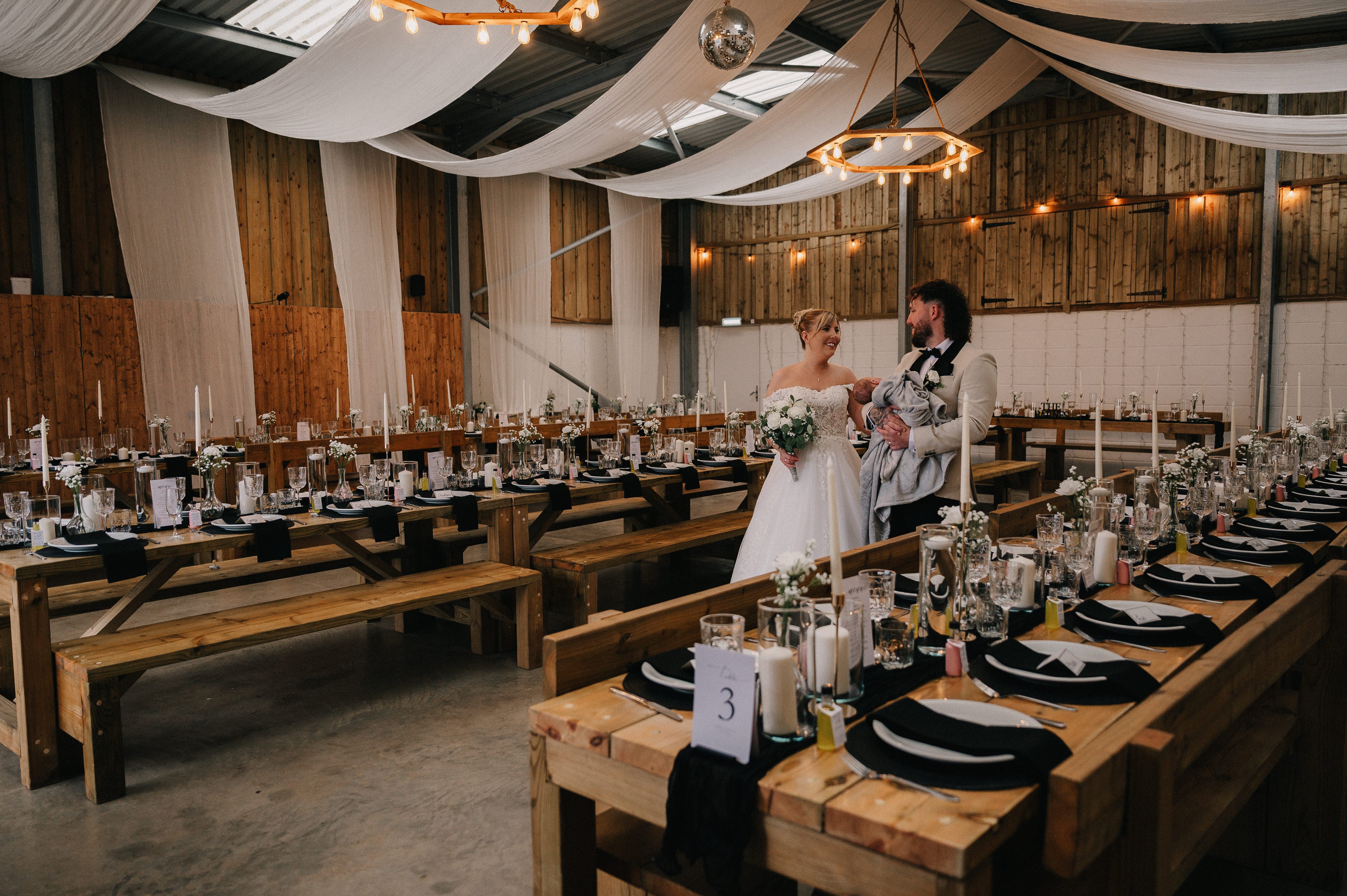 Inside the barn is also great - it’s really roomy and doesn’t require much decoration to become a really beautiful space. The long bench tables are a bit different to the smaller round tables you typically get in wedding venues, but to be honest we definitely preferred them - decorating them was super easy and for the guests they were probably even more sociable as round ones. For the evening, these get pushed back to make room for a dance floor.