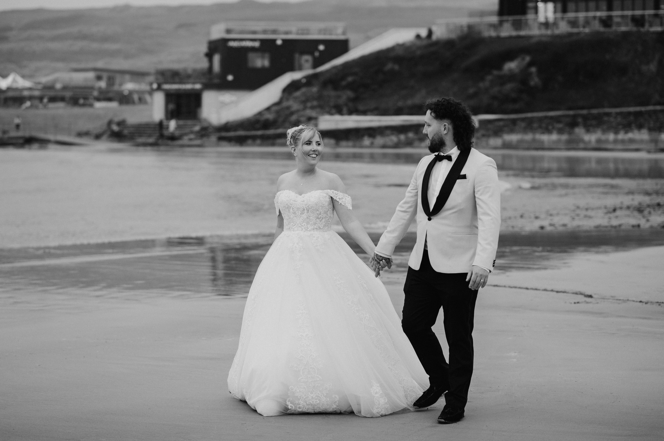 The ceremony held by the Pergola with Haybales & Benches at the front for our guests that needed more support, was perfect. The traditional posed photos were carried out just below the Pergola, allowing all of our loved ones to be captured for our memories. We managed to enjoy one of our welcome cocktails each (Spicy Margarita and A Dark & Stormy) and mingle for a moment before we snuck off to the nearby coastal path for some breathtaking photos of just us, soaking up our moment in the atmospheric scenery.